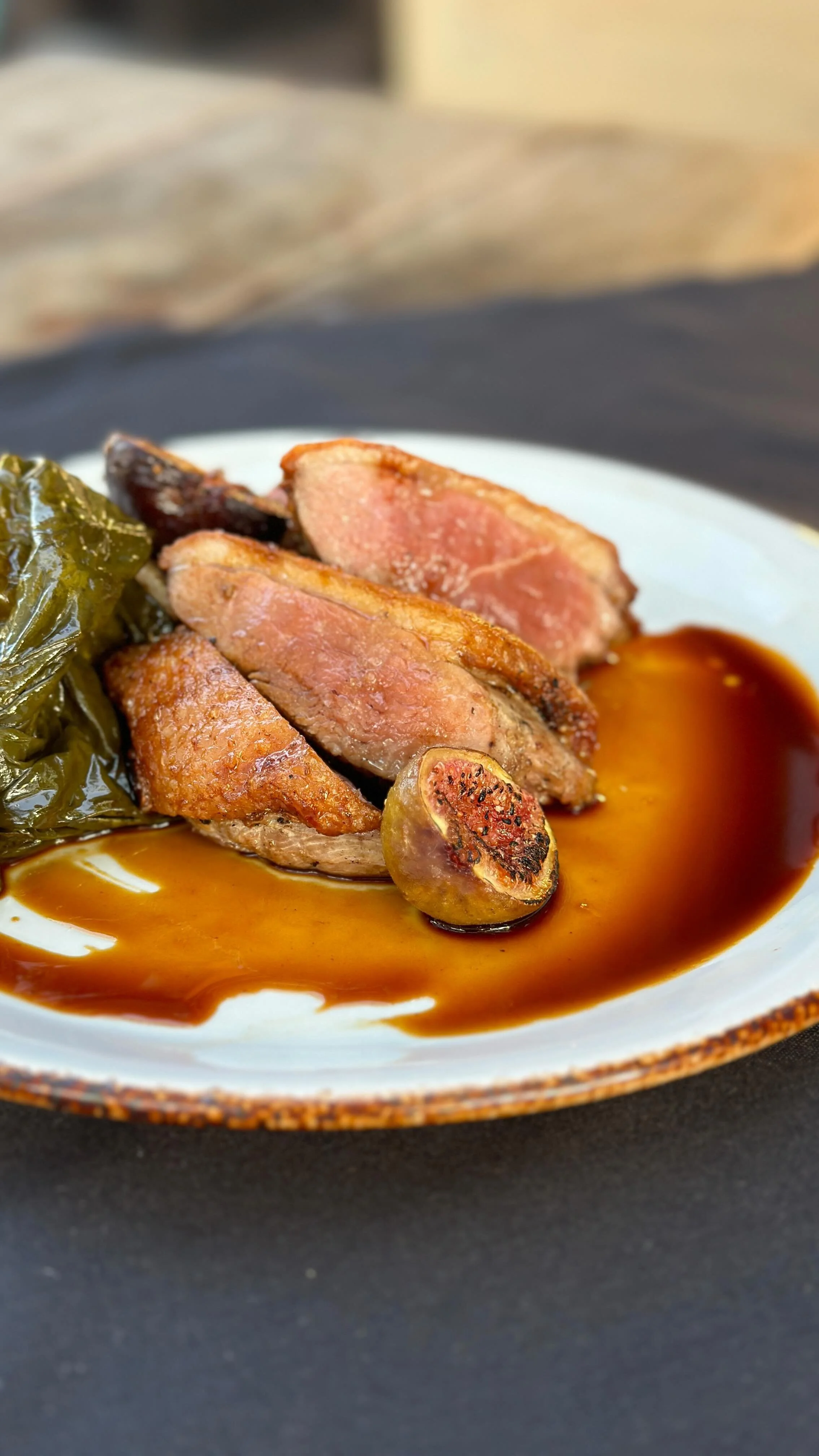 Faccia a Faccia features an expansive outdoor patio with lush greenery, inspired by al-fresco dining in Italy.
